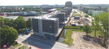 Sauerbruchhutton stellen im Kölner Congress-Centrum Nord ihr Studentenwohnheim woodie vor, das mit dem Semesterbeginn im Oktober 2017 eröffnet wurde. Dieses sechsstöckige Haus in Hamburg bietet für 371Studenten Platz. Für die Umsetzung gewannen die Architekten das Unternehmen Kaufmann Bausysteme aus dem Bregenzerwald. Denn die Pläne sahen vor, dass über einer tragenden Betonsockelkonstruktion im Erdgeschoss 371 Einzelmodule aus Holz (Länge: 6,80 Meter, Breite: 3,30 Meter) zu einem attraktiven Wohnhaus „gestappelt“ werden – eine absolute Novität im Wohnungsbau. Woodie überzeugt mit einem hohen Grad der Vorfertigung der Holzbauteile in Modulbauweise. Insgesamt wurden 3.800 m³ Fichten-, Tannen- und Lärchenholz aus der Steiermark verbaut.